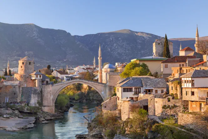 Esta pequeña ciudad medieval es la capital cultural de la región de Herzegovina. El paisaje urbano de tejados de terracota, los edificios de piedra, los minaretes y el puente Stari Most de Móstar crean una atmósfera que ilustra el Viejo Mundo.