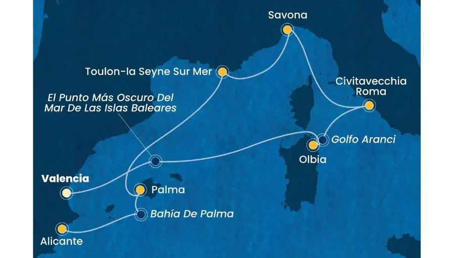 ¿Alguien ha dicho paella? ¡Sí, hemos sido nosotros! Imposible perdérsela aquí, en su ciudad natal, la espléndida Valencia. Otras cosas que no querrás perderte son la Ciudad de las Artes y de las Ciencias, diseñada por Calatrava, y el Mercado de la Seda, hoy Patrimonio de la Humanidad de la UNESCO. Pero también el Acuario más grande de Europa y la movida del Barrio del Carmen, con sus pequeños locales misteriosos. Una escala llena de energía durante tu crucero por el Mediterráneo.