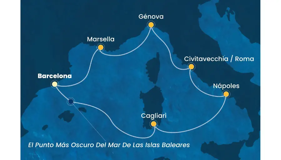 Es de noche y el barco alcanza el punto más oscuro del mar de las Baleares, uno de los poquísimos lugares de todo el Mediterráneo donde el cielo aún se ve completamente nítido: sin luces artificiales, sin costa a la vista, solo mar y estrellas. Todas las luces del barco se apagan. No hay reflejos. No hay ruidos. Solo el cielo, protagonista absoluto. Con la orientación del capitán y la app Stellarium, comienza un viaje entre constelaciones, planetas y galaxias. Una experiencia posible únicamente en navegación, solo en ese punto exacto del mar.