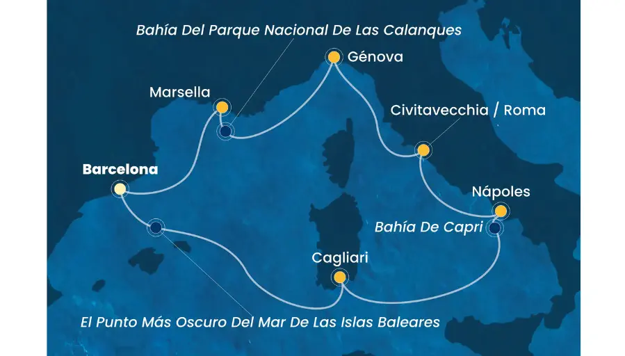 Es de noche y el barco alcanza el punto más oscuro del mar de las Baleares, uno de los poquísimos lugares de todo el Mediterráneo donde el cielo aún se ve completamente nítido: sin luces artificiales, sin costa a la vista, solo mar y estrellas. Todas las luces del barco se apagan. No hay reflejos. No hay ruidos. Solo el cielo, protagonista absoluto. Con la orientación del capitán y la app Stellarium, comienza un viaje entre constelaciones, planetas y galaxias. Una experiencia posible únicamente en navegación, solo en ese punto exacto del mar.